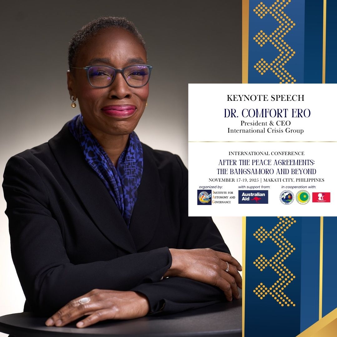 Dr. Comfort Ero, President and Chief Executive Officer of the International Crisis Group, will deliver the keynote address at the international conference After the Peace Agreements: The Bangsamoro and Beyond, to be held on 17–19 November 2025 at Dusit Thani Hotel in Makati City.